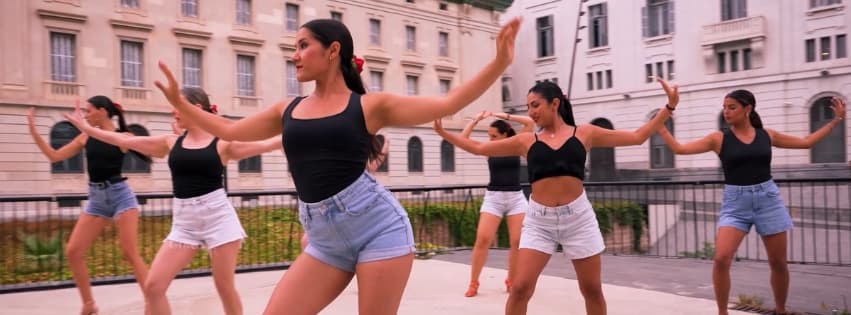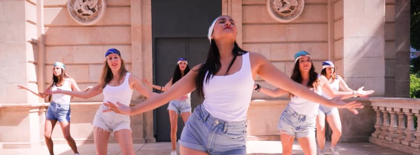 Cada mes aprendemos una coreografía diferente y cada dos meses realizamos un vídeo profesional en el exterior.